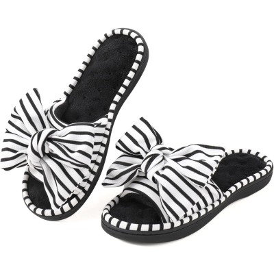 Slippers for Women Memory Foam House Bedroom Corduroy Bow Crossbands Slide Slipper Shoes