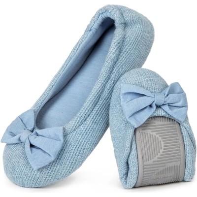 Women's Comfy Cotton Knit Memory Foam Ballerina Slippers Light Weight Terry Cloth House Shoes