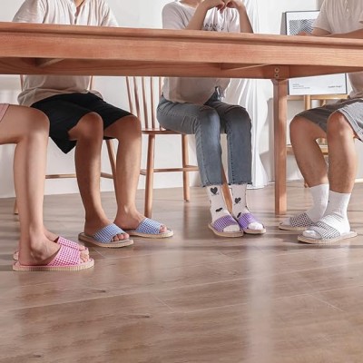 Women Mens Unisex Washable Cotton Open-Toe Home Slippers Indoor Shoes Casual Flax Soft