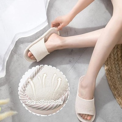 Women Mens Unisex Washable Cotton Open-Toe Home Slippers Indoor Shoes Casual Flax Soft Non-Slip Sole Shoes