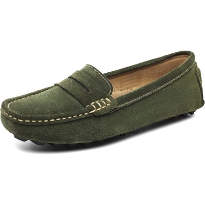 Women's Suede Leather Casual Penny Loafers Retro Ladies Moccasins Driving Mocs